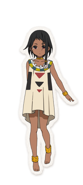 Her attire consists that of a traditional, foreign dress as well as neck accessories. She is always barefoot and wears gold anklets and bracelets.